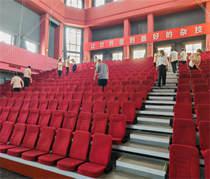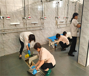 环境人员紧随工程团队之后,全面开启楼宇清洁作业,对学生公寓、演员楼的房间、楼道杂物,以及公共区域的玻璃、墙面等边角细节,开展无死角深度清扫。浴室作为清洁“特殊阵地”,清洁力度更是加码:不仅重点排查排水隐患,还逐一拆除花洒水垢、刷洗墙面皂渍、疏通地漏油污,同时对储物柜进行彻底消毒杀菌,最后对浴室门窗、墙面、地面进行全方位擦拭与拖洗,确保每个角落洁净清爽,以细致服务还原洁净环境。