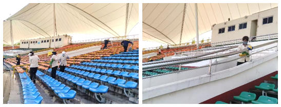 此次专项清洁工作彰显了物业团队的专业深度与服务精度:针对看台座椅多色分区、结构复杂的特点,制定“一区域一方案”的清洁流程,作业现场,严格遵循“分区推进、错峰作业、安全第一”的原则。经过整日奋战,原本附着污渍的座椅恢复了鲜亮本色,洁净的台阶、无杂物的缝隙、光亮的护栏共同构成了整洁有序的观赛环境,体育场整体面貌焕然一新,为即将到来的各类赛事活动提前“梳妆打扮”。